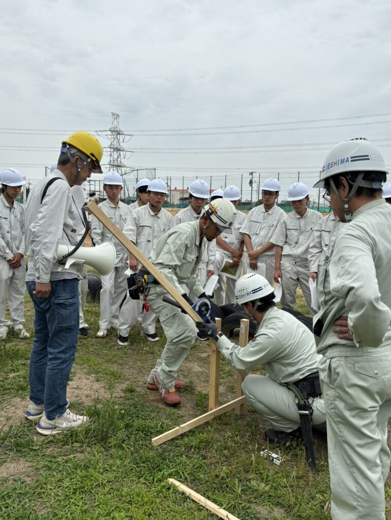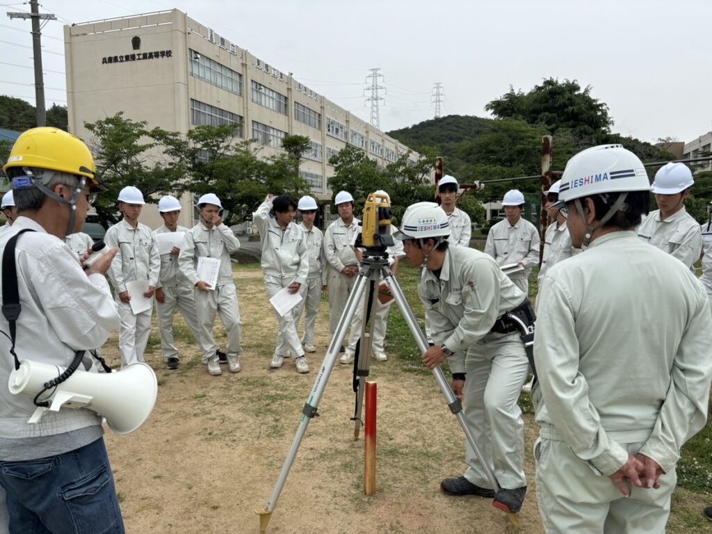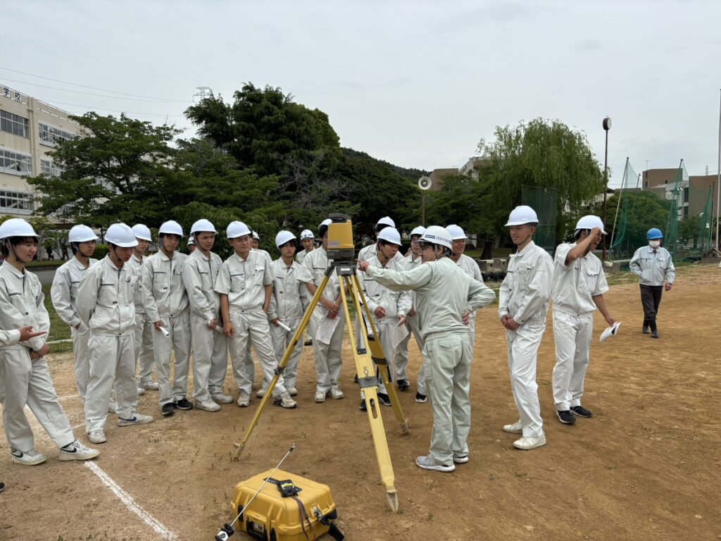 生徒の皆さんに丁張(ちょうはり)体験など、実際の測量作業を体験してもらいました。